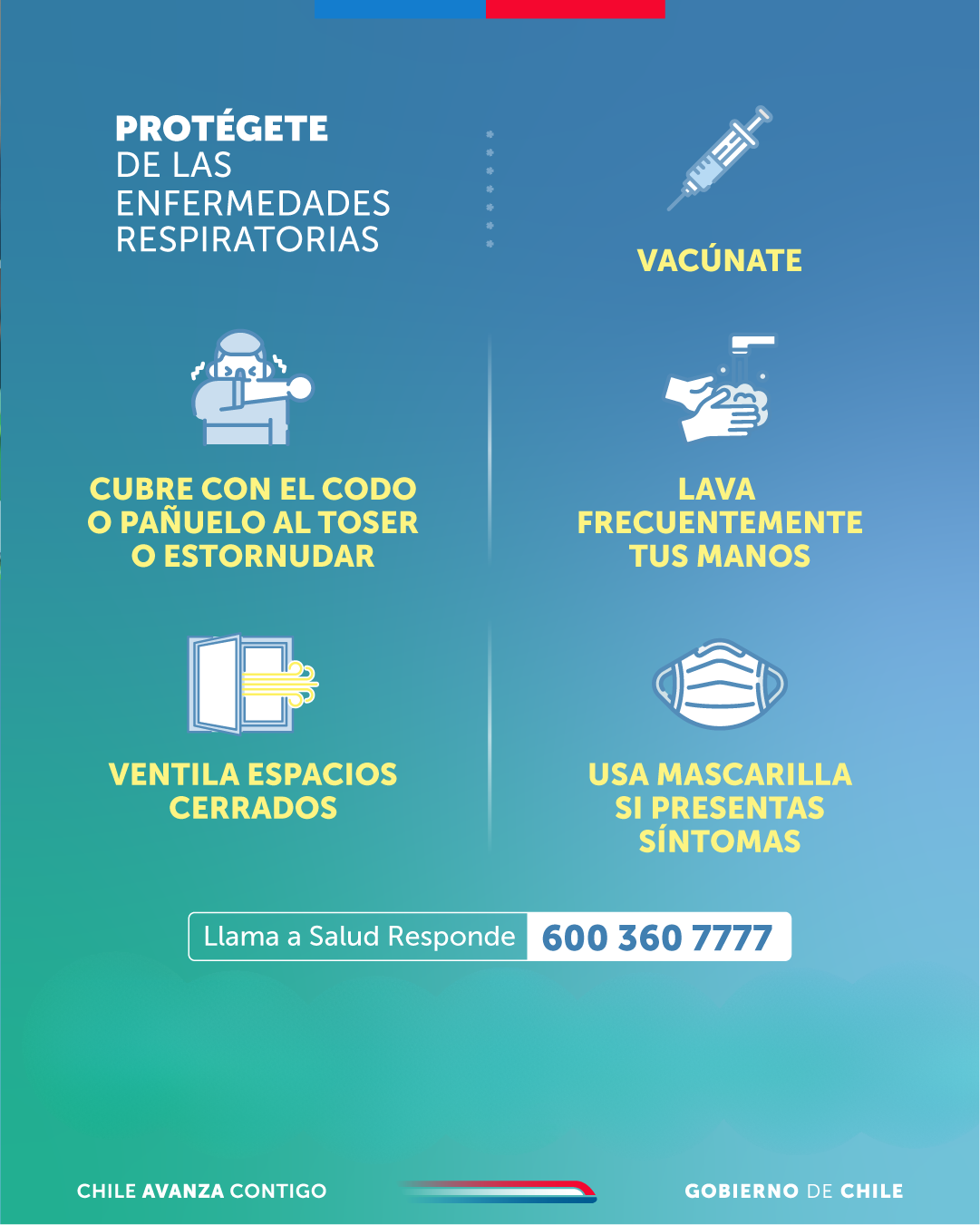 Junto con ello, se reiteró la importancia de mantener hábitos preventivos como el lavado frecuente de manos; cubrir boca y nariz con el antebrazo al toser o estornudar; usar pañuelos desechables y desecharlos inmediatamente; ventilar espacios cerrados y utilizar mascarilla en caso de presentar síntomas respiratorios.
