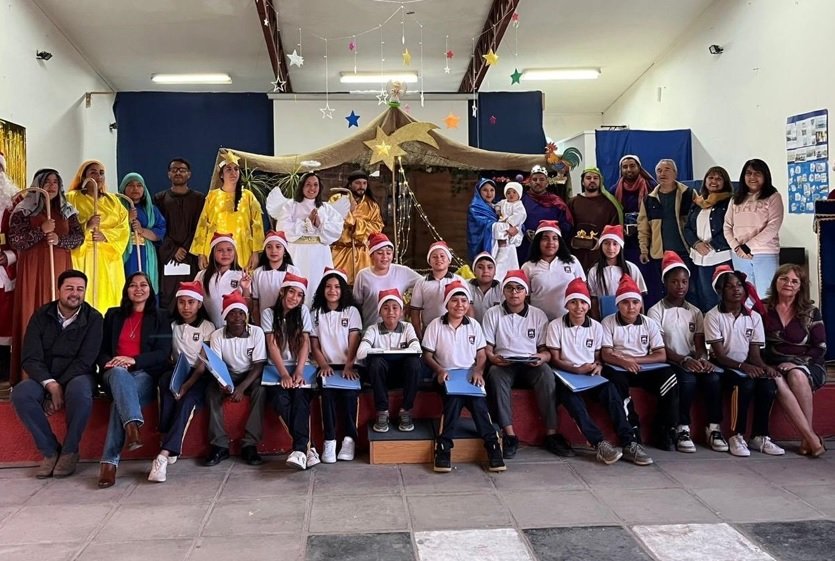 También hubo espacios para deleitar a las y los presentes con el coro del colegio, dirigido por el profesor Sergio Pastén, el cual interpretó villancicos navideños como “El Burrito Sabanero y “Los Peces en el Rio”.