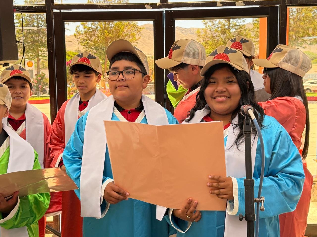 Dando la bienvenida a la época navideña, niñas y niños que conforman el Coro Infantil de la Escuela Las Brisas de Copiapó, participaron de una exhibición de villancicos, donde se demostró lo aprendido durante seis meses en los talleres que fueron parte del Plan de Fortalecimiento Puntos Cultura “Resonando con sentido de identidad y comunidad”.