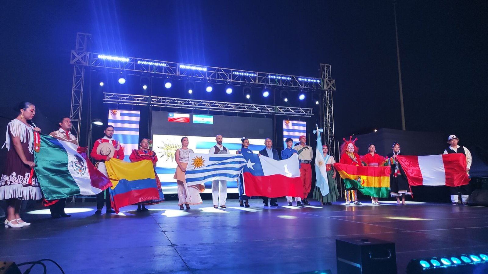 Sobre el escenario se presentaron la agrupación folclórica Vientos del Puerto (Caldera-Chile), agrupación Florecen Ensueños (Uruguay), Gran Ballet de Monteros (Argentina), Centro de Danza Folclórica Mi Bolivia (Bolivia), Centro Cultural Raíces (Perú), Fundación Cultural Renacer Folclórico Manizales (Colombia), Compañía de Danza y Bailes Tradicionales Quetzalcóatl (México) y como invitados en esta XV versión la agrupación Renacer Criollo (Caldera.