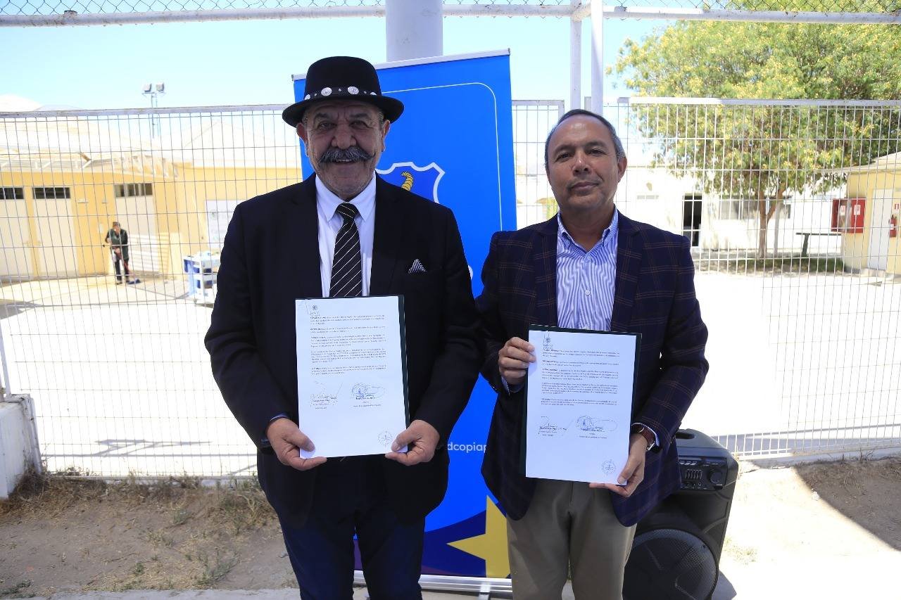 Copiapó, 19 de noviembre 2025.- El alcalde de Copiapó, Maglio Cicardini Neyra y el rector de Santo Tomás, Rodrigo Rojas Veas, firmaron un convenio de colaboración que permitirá a las y los estudiantes de esta casa de estudios efectuar prácticas en las distintas reparticiones municipales.