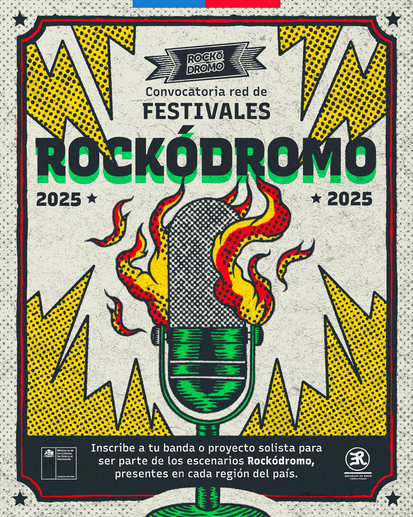 • El periodo de postulación abrió este 7 de abril y se extenderá por un mes. Las bandas y solistas inscritas podrán optar a ser parte del cartel para alguno de los 16 festivales públicos, de Arica a Magallanes, producidos por el Ministerio de las Culturas, las Artes y el Patrimonio a través del programa Escuelas de Rock y Música Popular.