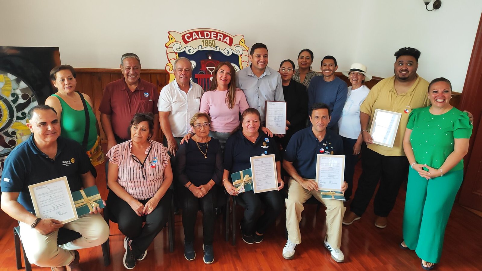 La comitiva fue recibida en el salón de honor de la Municipalidad de la comuna donde fueron recibido por la administradora municipal Daniela Castillo junto a los concejales Natán Pereira, Natalia Muñoz, la directora (s) de salud municipal Daniela Carrasco junto a ellos los representantes de Clubes Rotarios de Copiapó y Caldera, quienes fueron distinguidos como visitas ilustres de Caldera siendo reconocidos por la administradora municipal y concejales.
